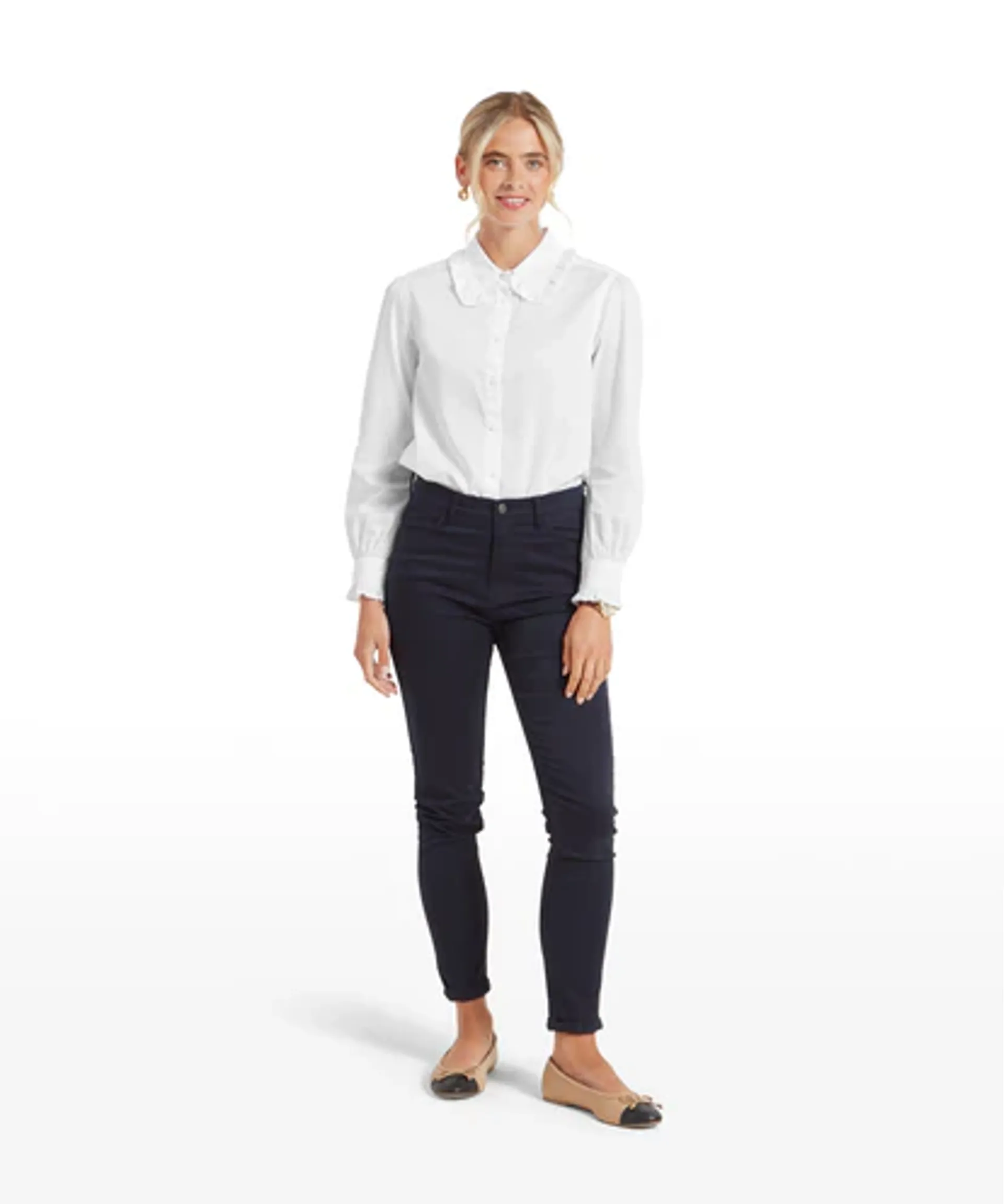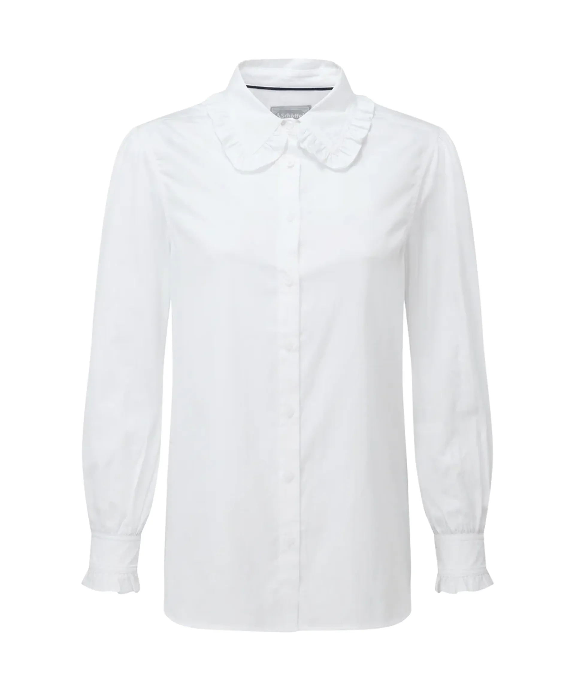 The Somerleyton Shirt is an exquisite pure-cotton blouse with a frill collar and cuffs that will add a touch of distinction and delicate charm to any outfit. Tucked or untucked, with a tie or open necked, it's yours to style any way you like.