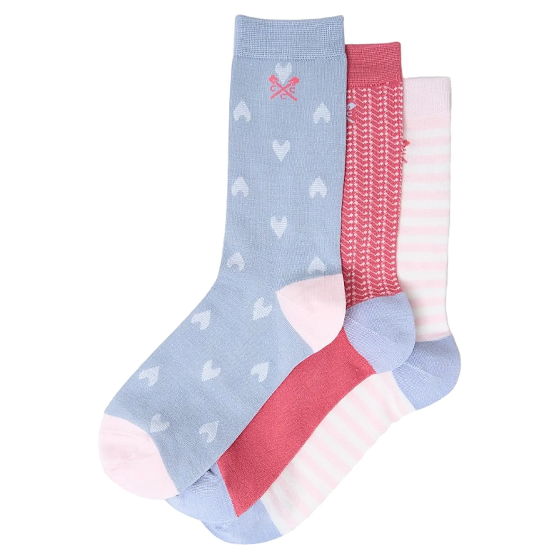 Crew Clothing Bamboo Sock Heart and Stripe 3PK in Pink