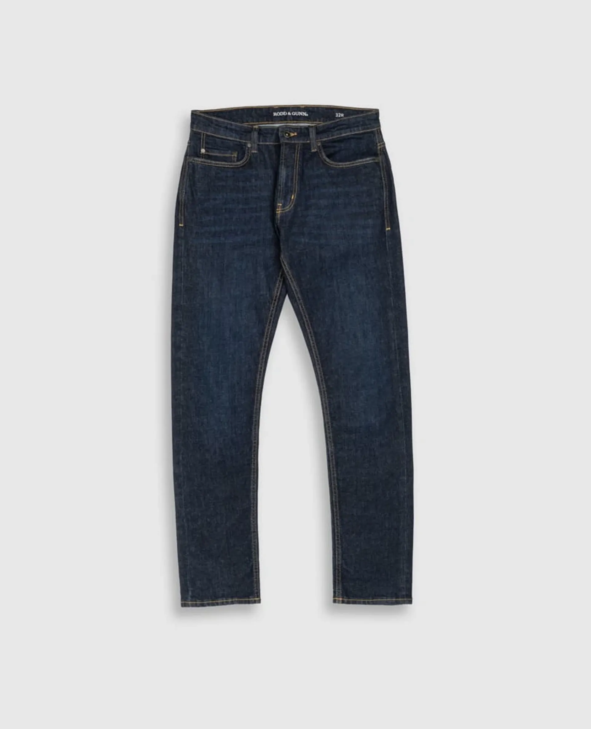Question(s) answered about Rodd and Gunn Sutton Straight Italian Denim in Dark Blue