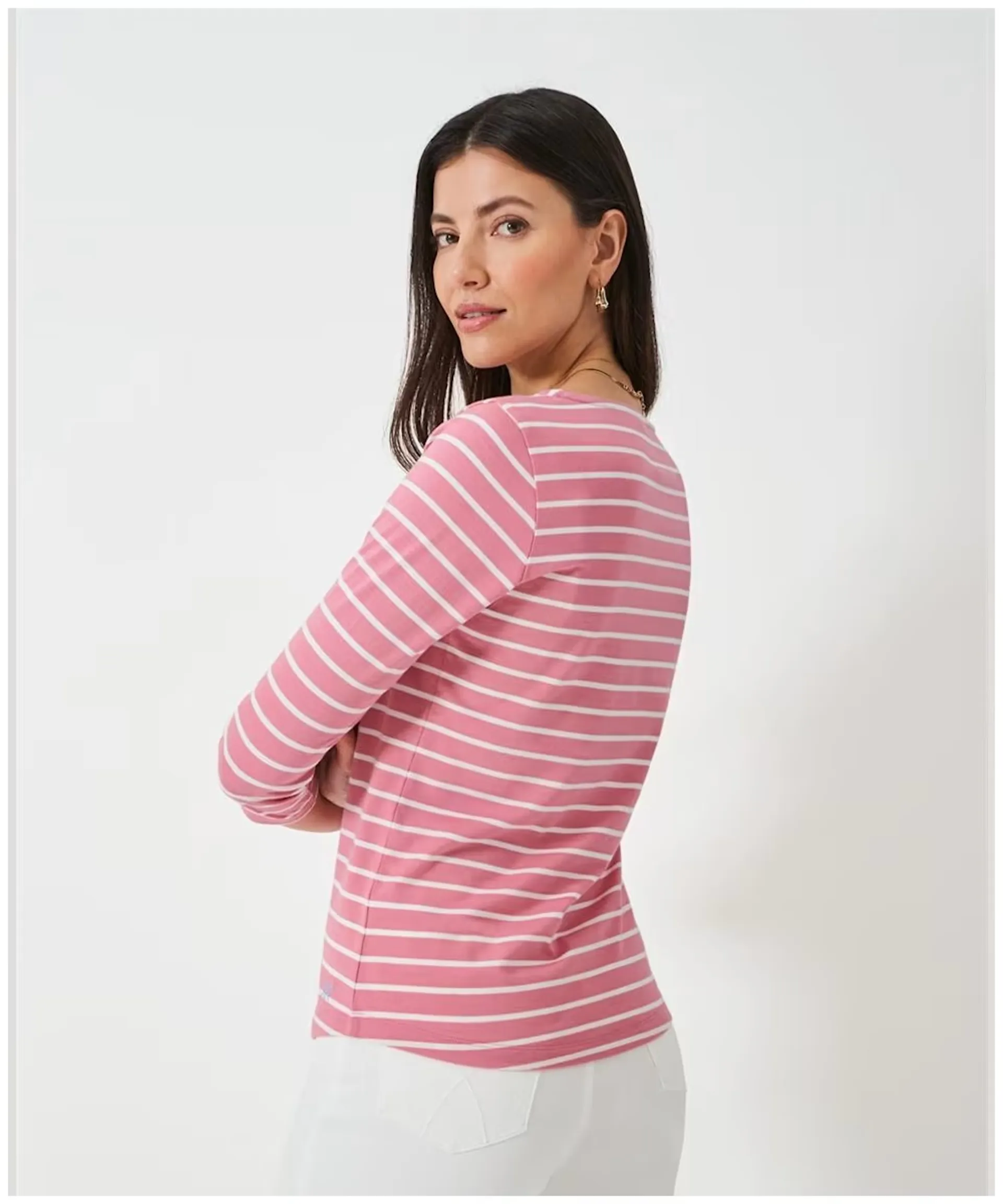 A staple from Crew Clothing is the ladies Essential Breton Top, a timeless classic reimagined for modern style. Made from supersoft cotton, this piece offers both comfort and versatility, while the curved hem creates a flattering, feminine silhouette.