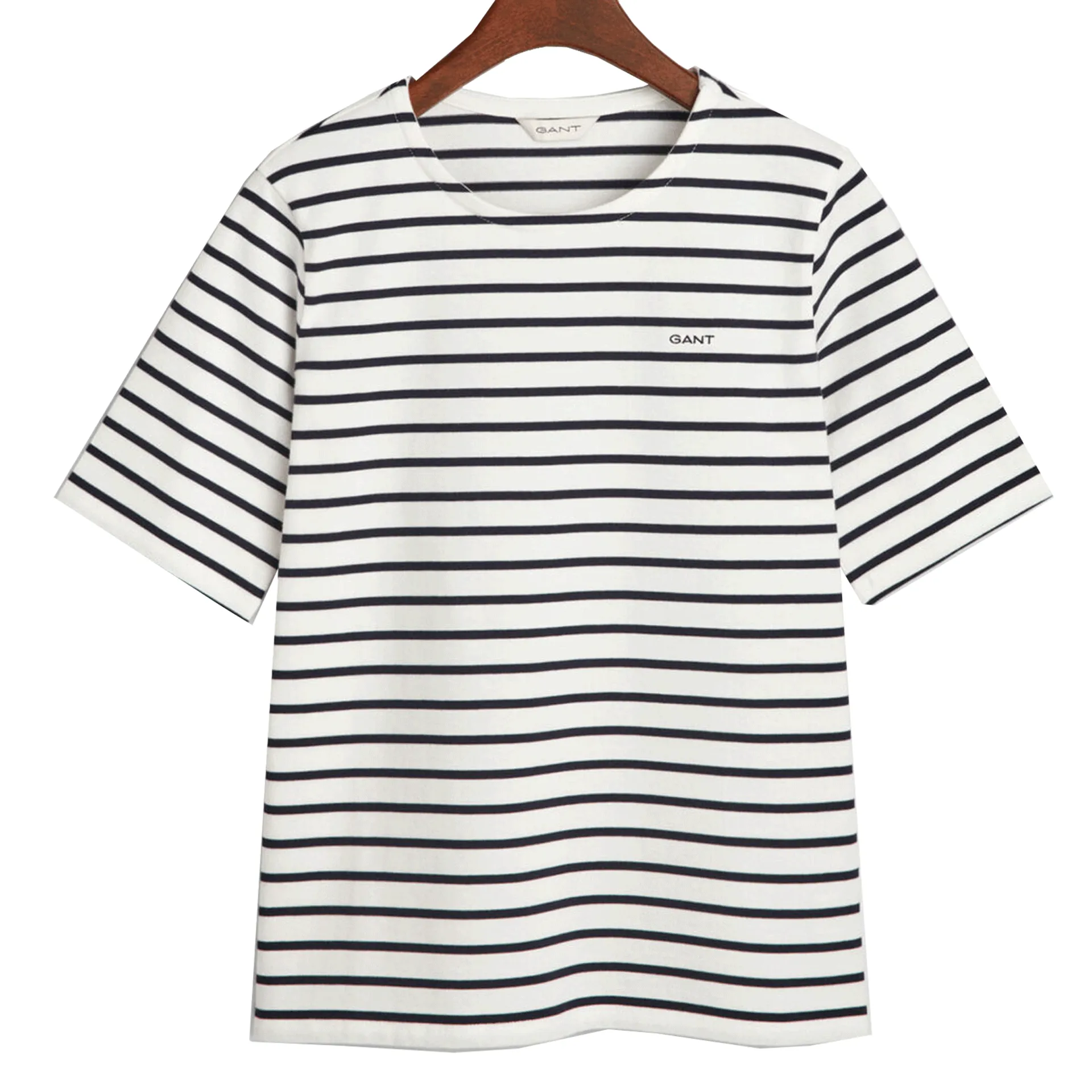 Gant Ladies Regular Breton Crew Neck T-Shirt Eggshell