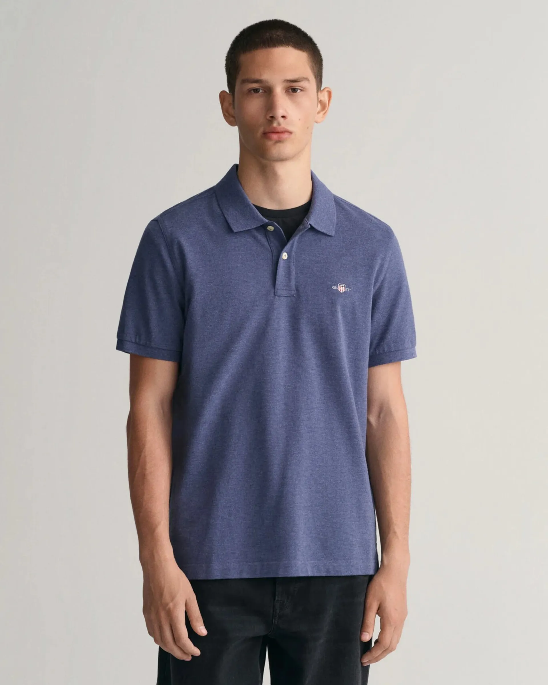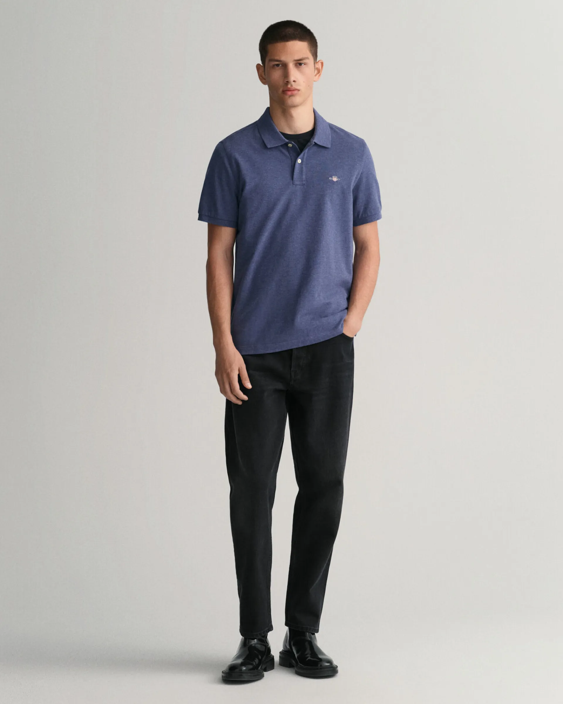 Gant Regular Fit Shield Pique Polo Shirt Dark Jeansblue Melange
