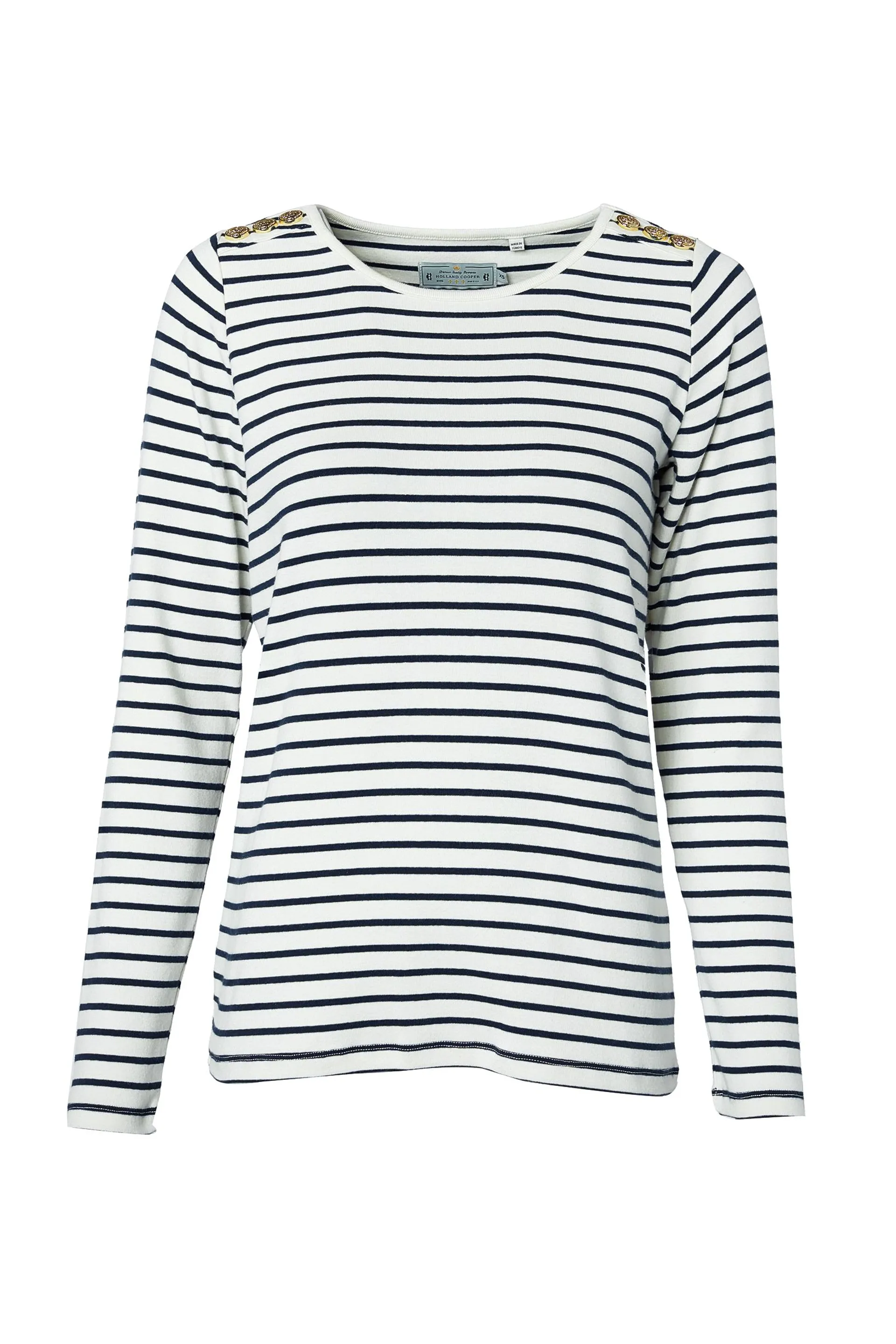 Holland Cooper Padstow Long Sleeve Crew Neck Tee Natural Ink Navy Stripe