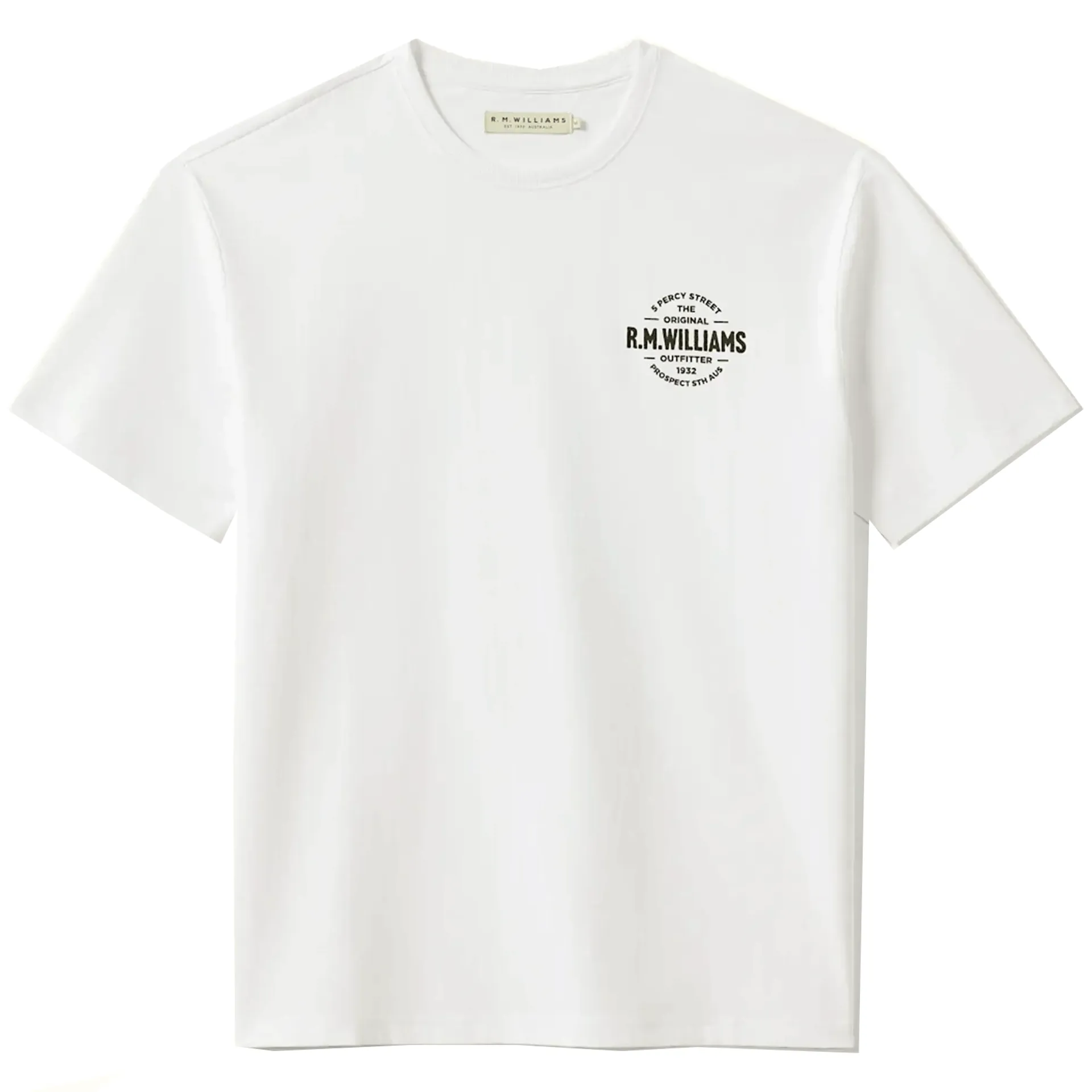 The RM Williams Prospect Tee is an easy to wear organic cotton T-shirt, cut in a classic fit for effortless summer style. The Tee has a screen printed graphic from the RM archives.