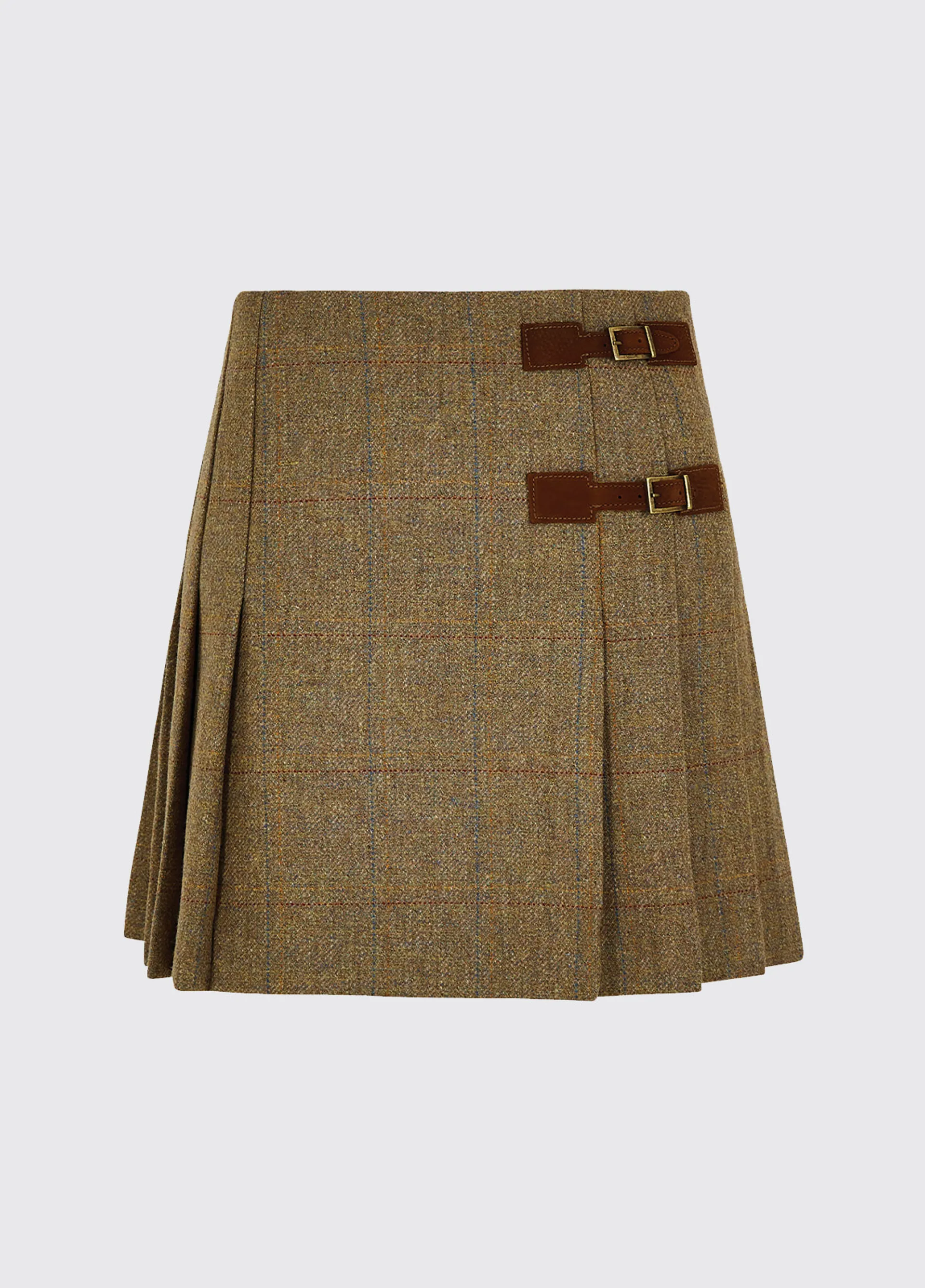 A country classic with a contemporary twist, the Blossom tweed skirt offers great versatility. Team the short, pleated skirt with a polo and light knit for a relaxed preppy style or a Dubarry Chamomile tailored shirt and Poncho for a stunning race day outfit. Styles perfectly with a Dubarry Downpatrick boot.