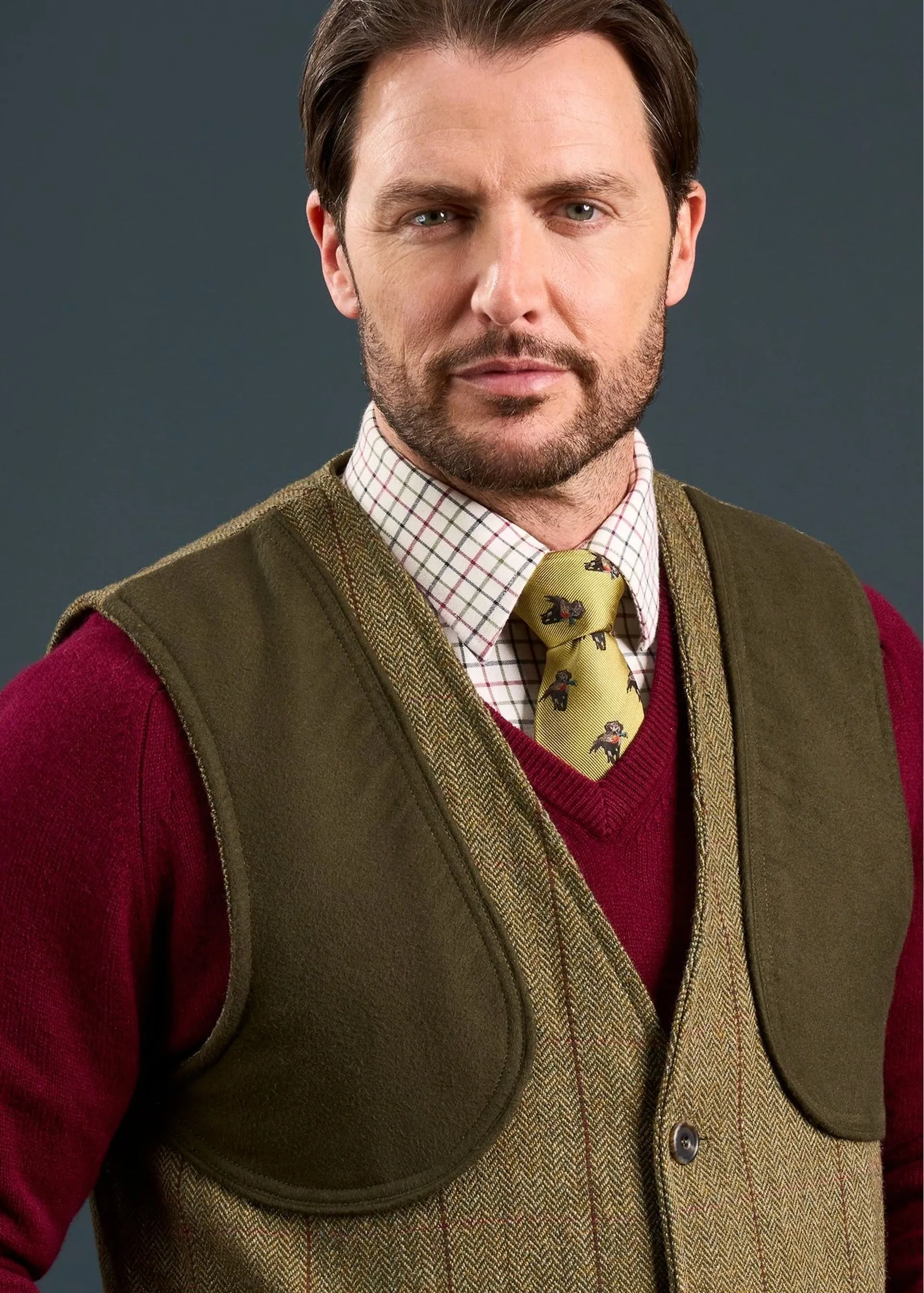 The classic shooting silhouette allows you to take unhindered movement when it matters. It looks great worn over an Alan Paine jumper.