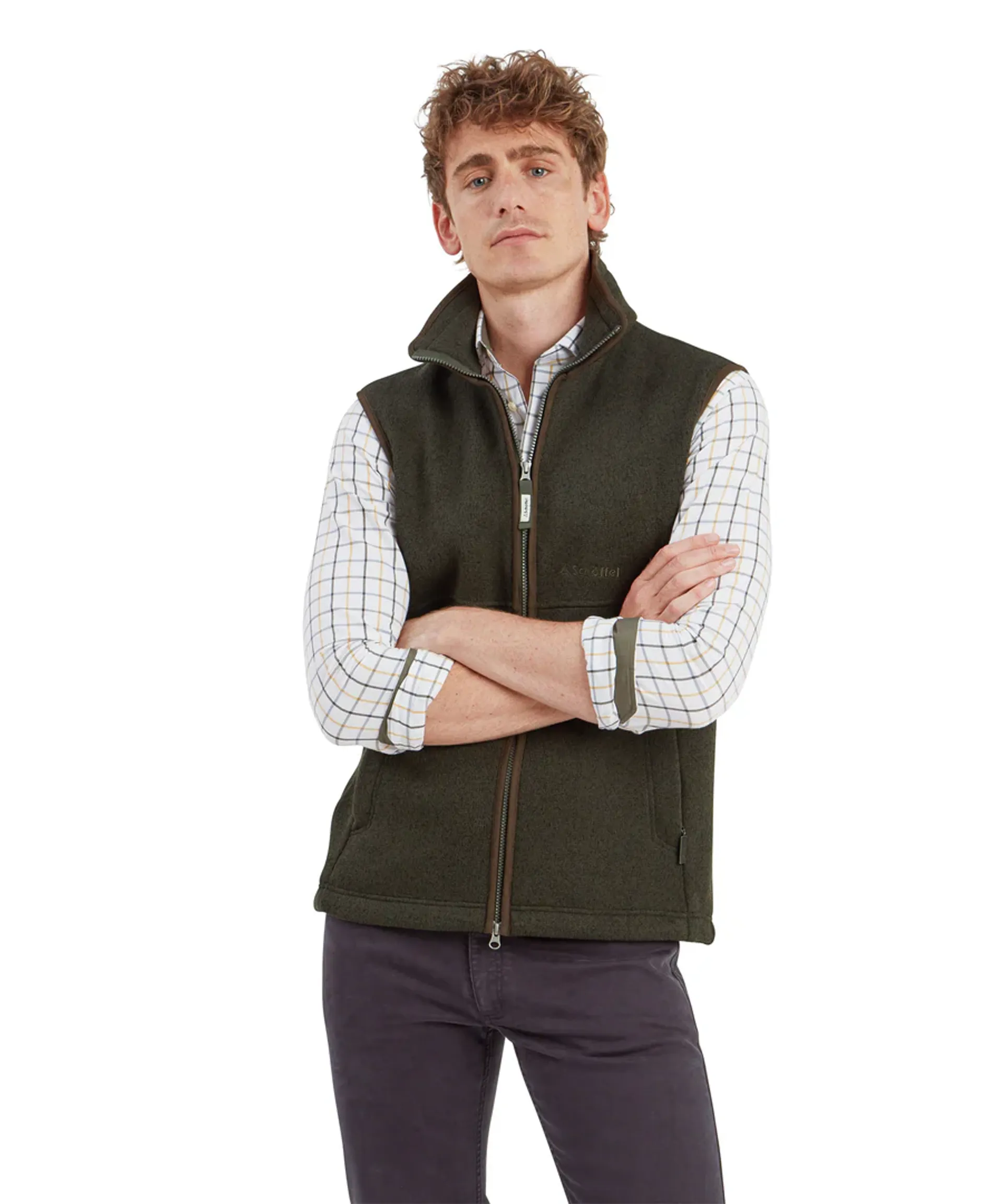 Super premium knitted fleece, regular fit gilet. This wonderfully warm and versatile gilet is certainly a must for the cold weather. This beautiful knitted fleece has with security pockets and features the usual Schoffel branding.