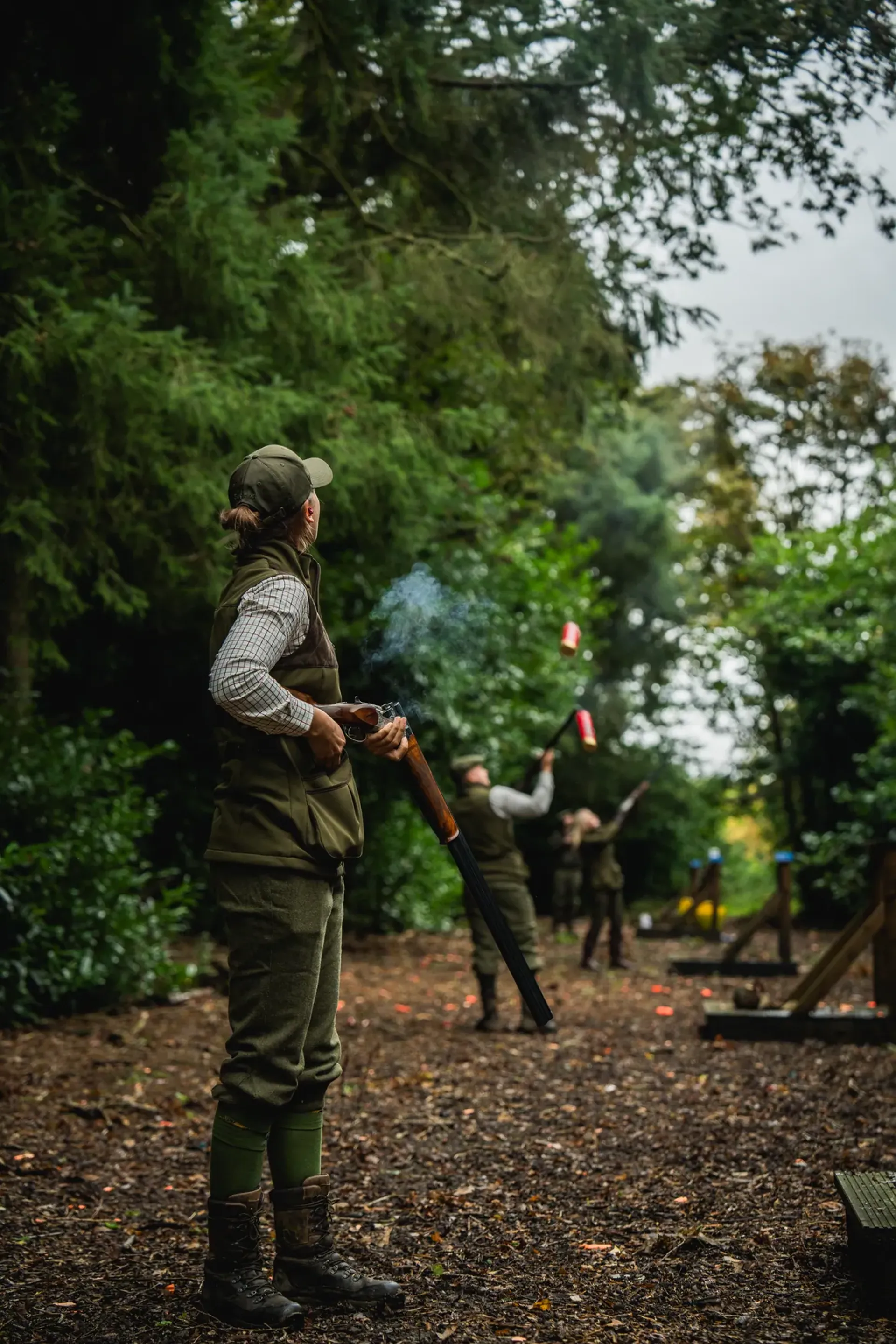 Key features include spacious front pockets with drain holes, inside recoil pad pockets and a strap holder for glasses and ear defenders. An adjustable waist and a two-way YKK zipper ensure a flattering, customisable fit, while an inner pocket with a detachable lens cloth adds to its practicality.