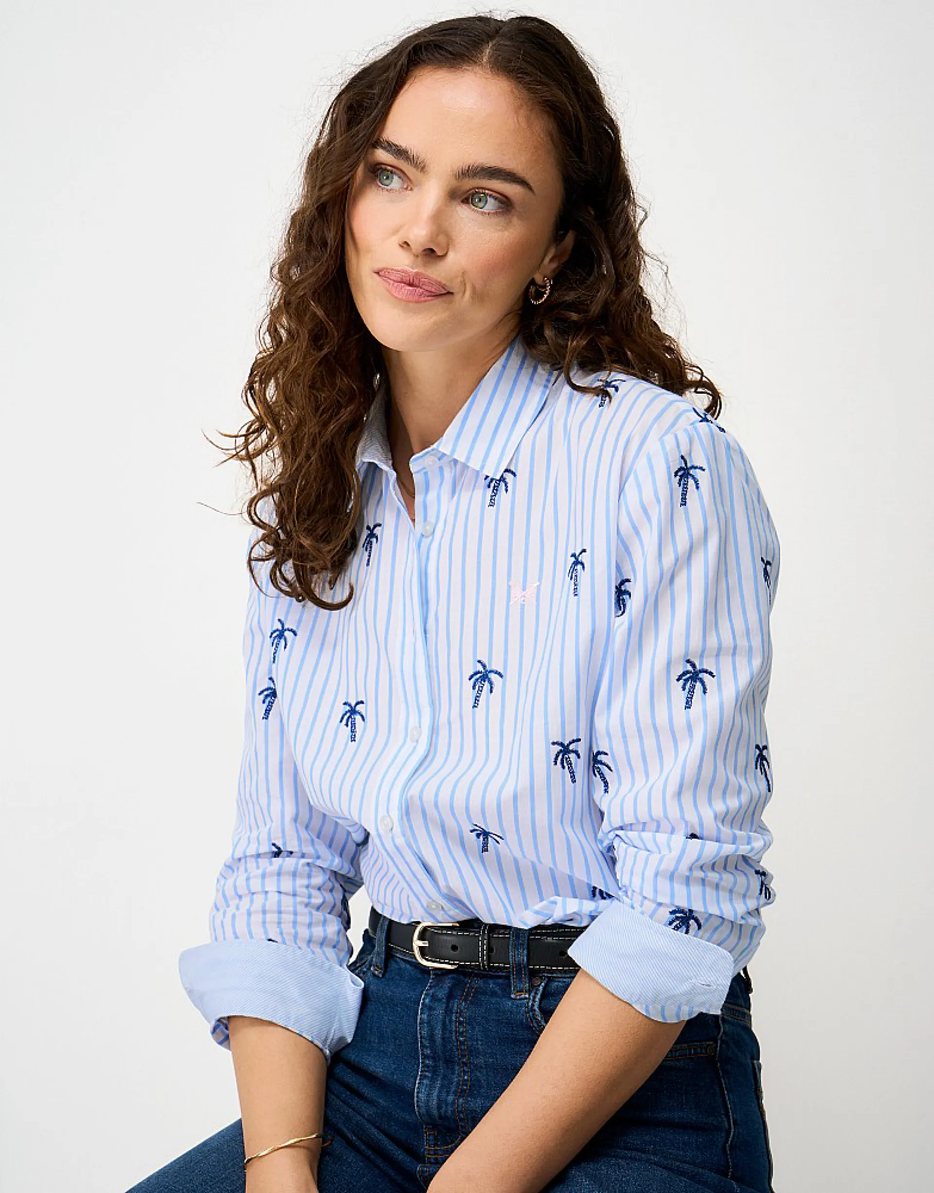 Made from 100% cotton, this lightweight shirt is detailed with all-over palm tree embroidery for a subtle summer feel. Finished with branded buttons, chambray touches inside the collar and cuffs, and Crew Clothing's signature crossed oars embroidered on the chest, it is an easy style to wear now and into the season ahead. Pair with jeans or shorts for effortless off-duty days.