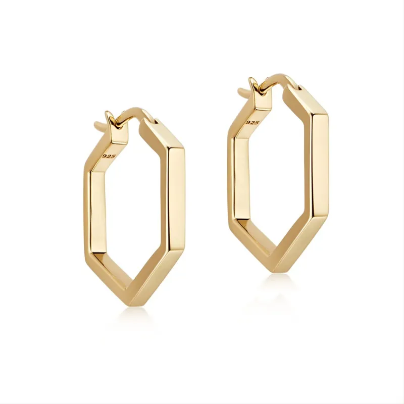 Gold Trip Hexagon Huggie Hoop Earrings in Gold