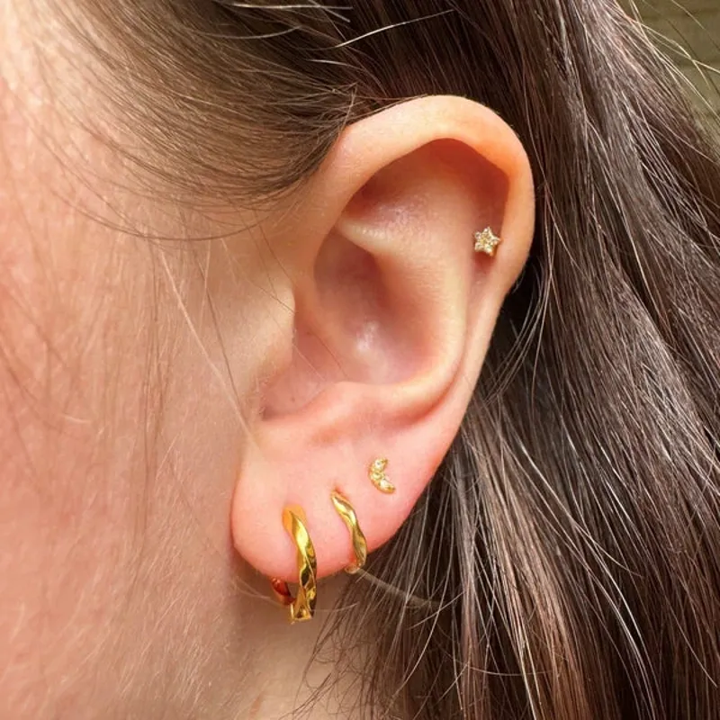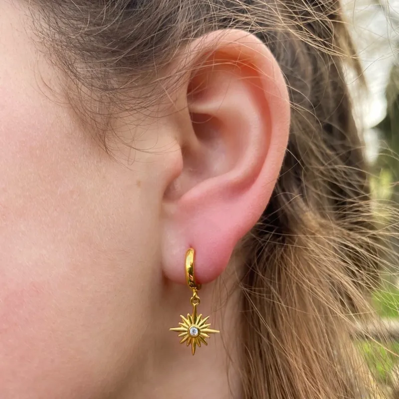 Reeves and Reeves CZ Star Sleeper Hoop Earring in Gold