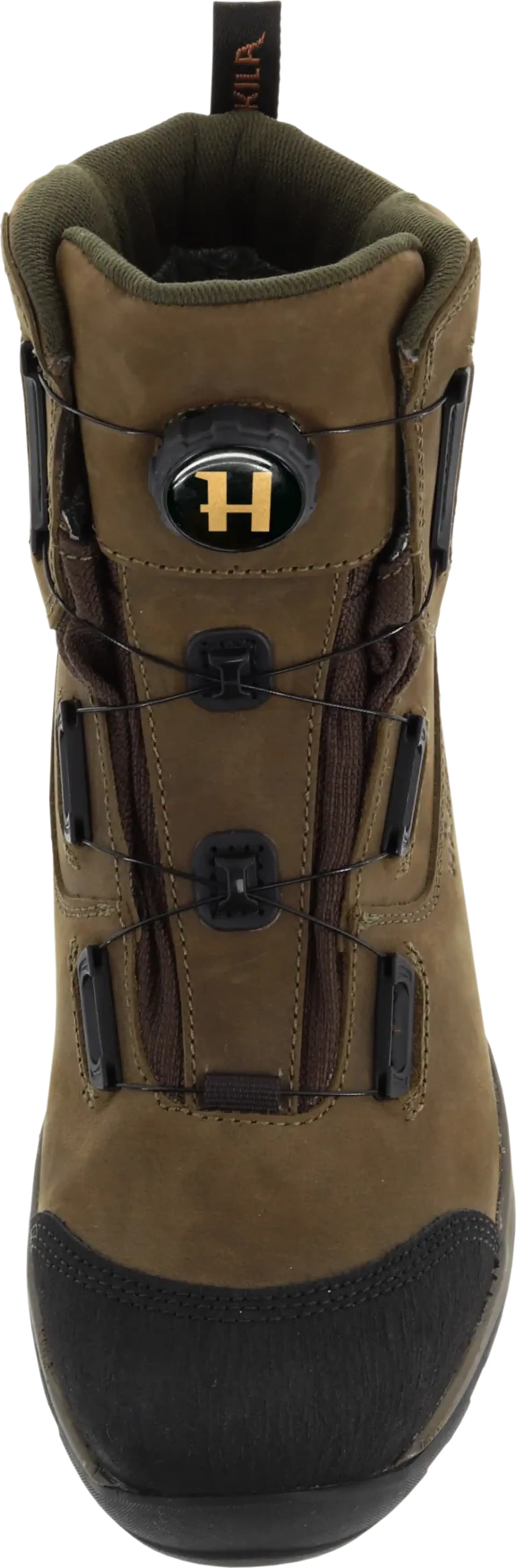 Härkila Reidmar Mid 2.0 GTX Boots — rugged Dark Brown nubuck leather, GORE‑TEX waterproof membrane, Vibram sole, U‑TURN quick lacing system.