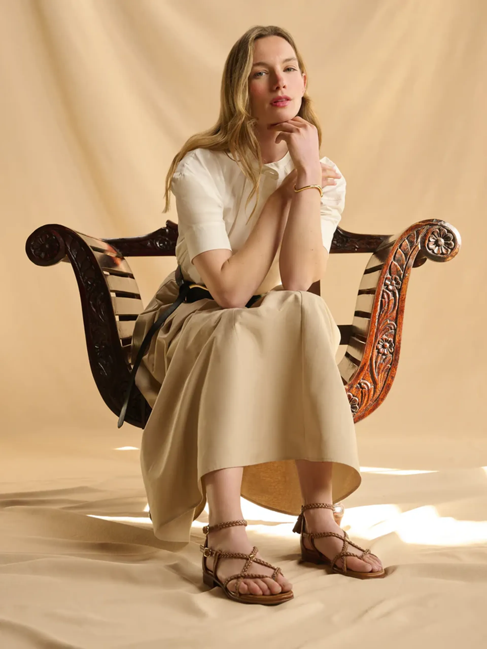 A new take on a summer sandal, the Seville is beautifully crafted from Italian leather with a braided strap detail and iconic Fairfax tassel trim on the back – complete with a flat heel so you can walk all day in comfort and season-ready style.
