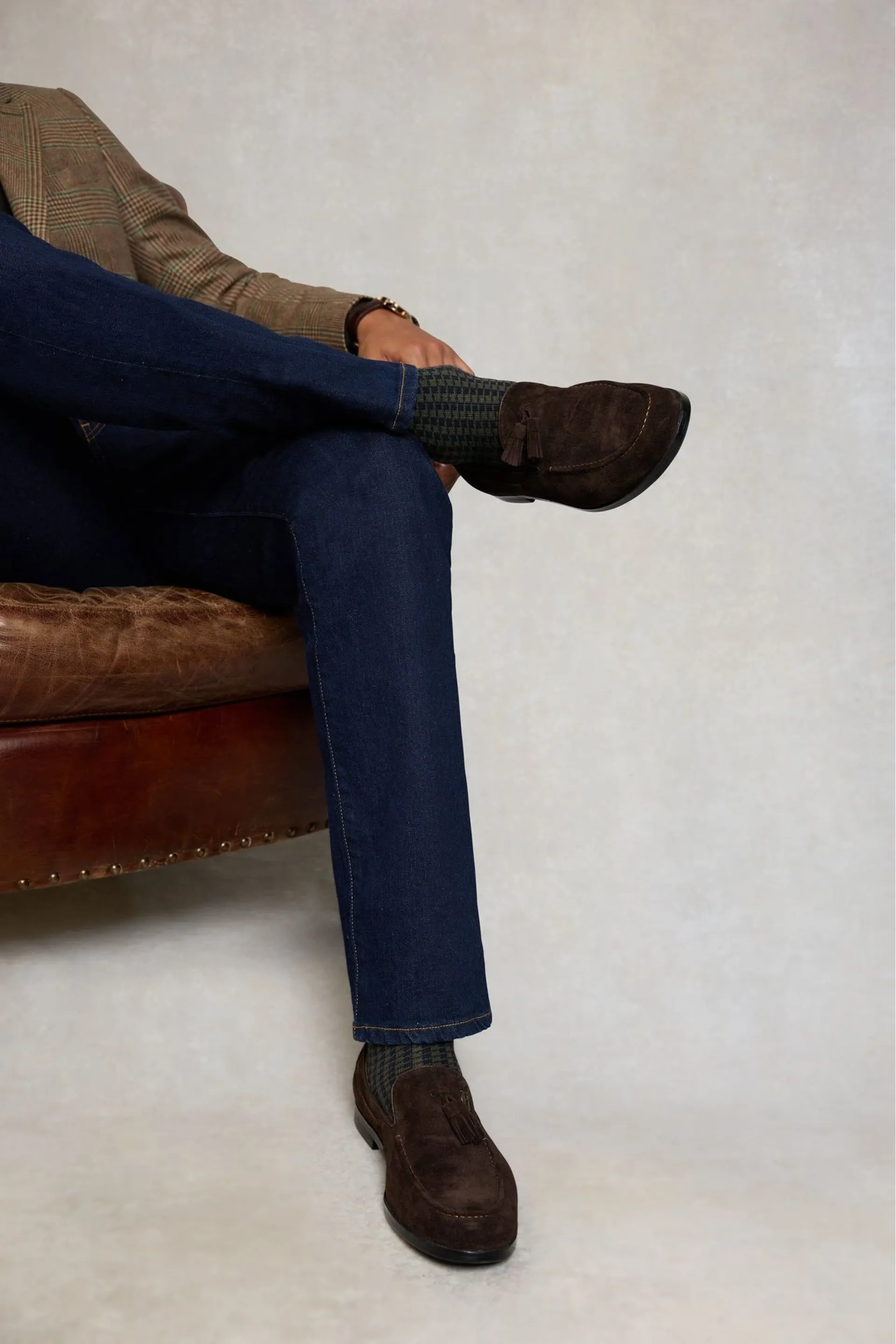 Holland Cooper Men's Suede Tassel Loafer in Chocolate