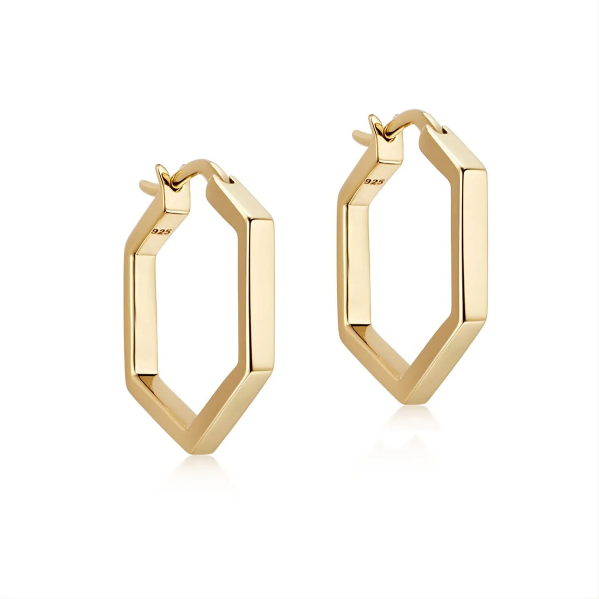 Question(s) asked regarding Gold Trip Hexagon Huggie Hoop Earrings in Gold