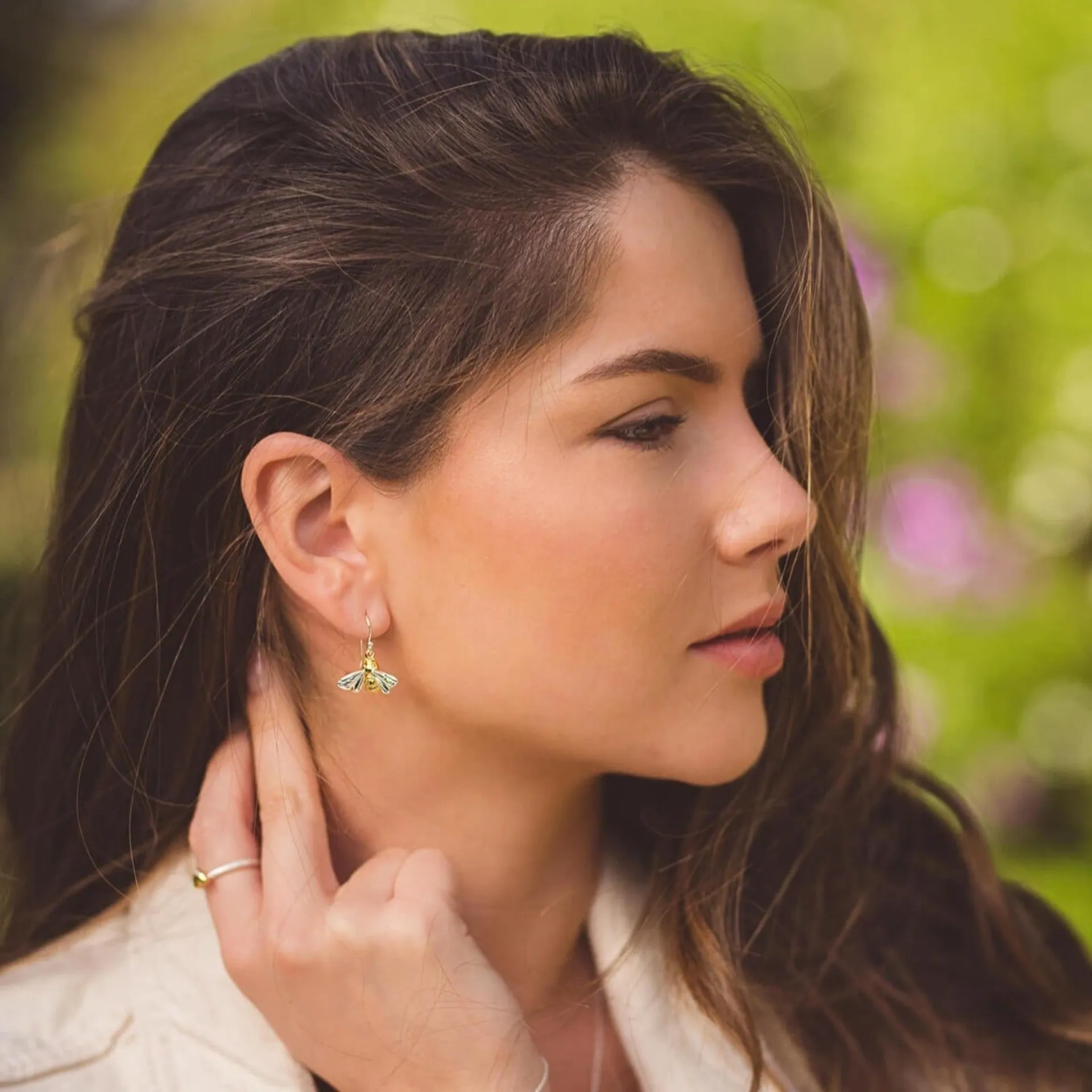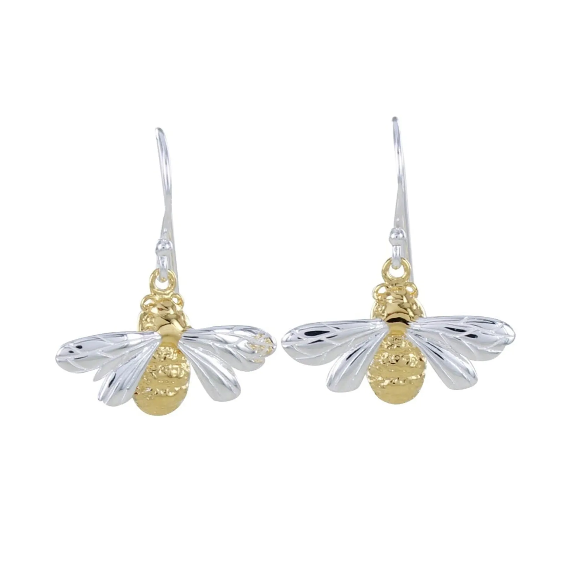 Whether you're dressing up for a special occasion or adding a touch of luxury to your everyday look, the Queen Bee Earrings are the perfect accessory. Crafted in beautiful sterling silver with a lustrous coating of 18ct gold plate in the body, these lovely earrings are carefully designed to make a truly eye-catching piece. The bees have exquisite detailing in their body and wings to capture the essence of these majestic creatures. The bees hang daintily from sterling silver hooks which sit beautifully in the ear when worn.