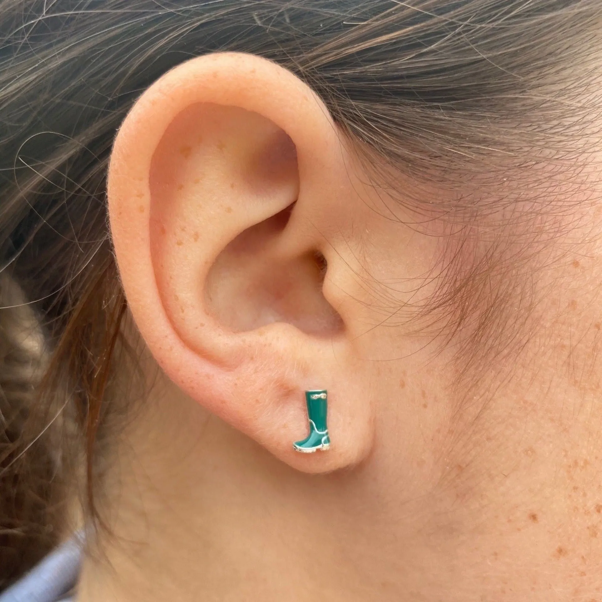 Reeves and Reeves Sterling Silver and Enamel Welly Stud Earrings