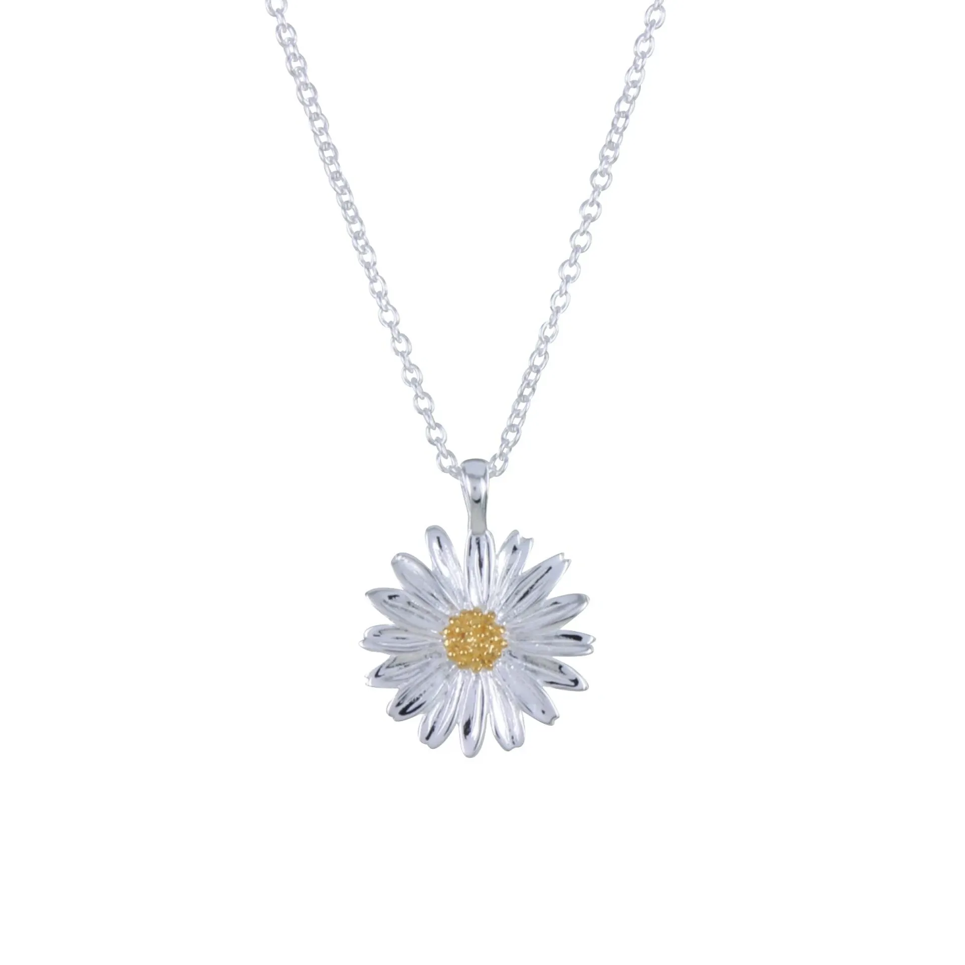 This Sterling Silver Daisy Necklace is a delicate and timeless piece, featuring an intricately crafted daisy with 18ct gold plate detail.