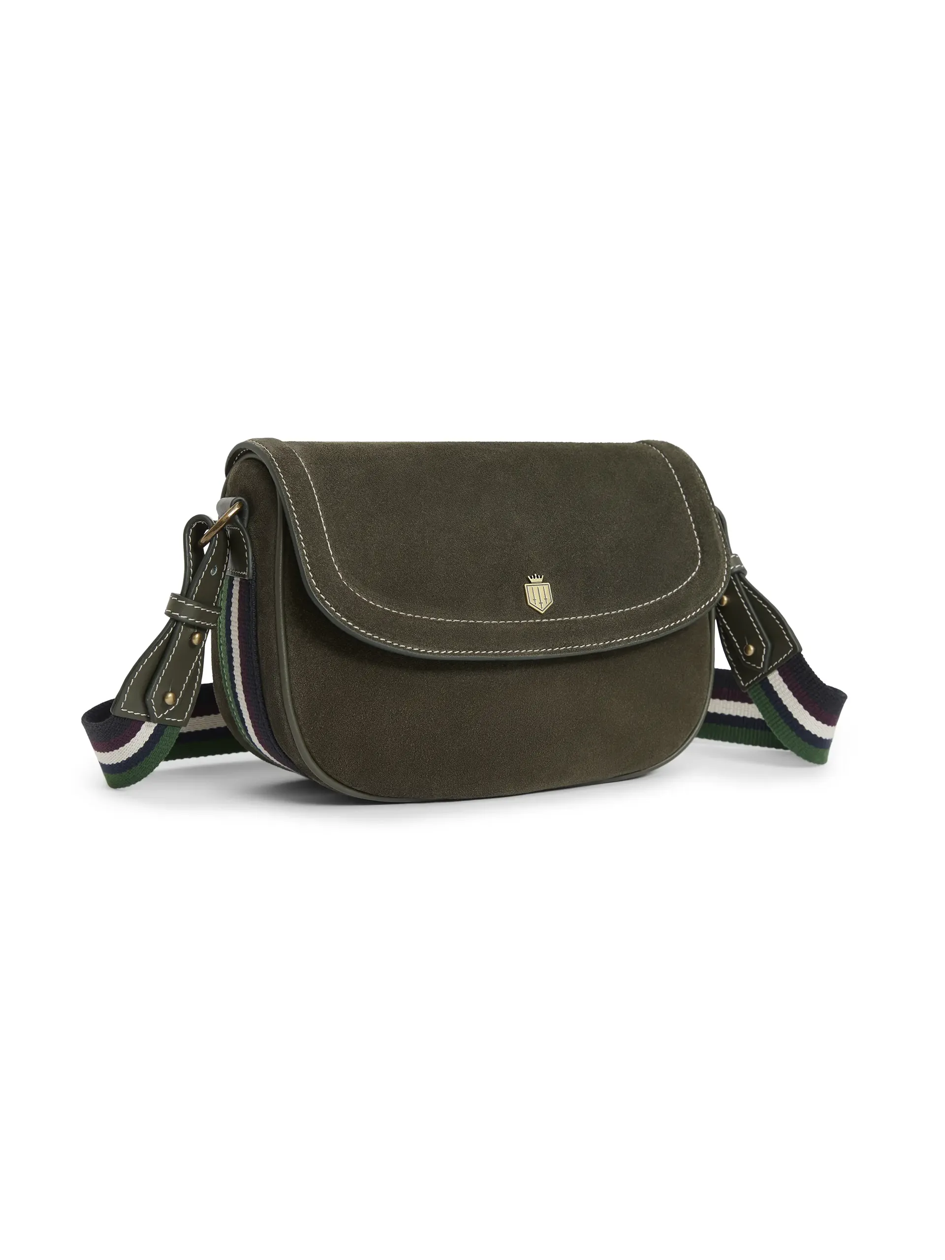 The Boston handbag in this beautiful Moss suede is bringing the autumn vibes. With its striped strap and soft suede, this cartridge bag finishes off your autumn weather outfit. Pair with Richmond Trainers and a jeans for a great autumn look.