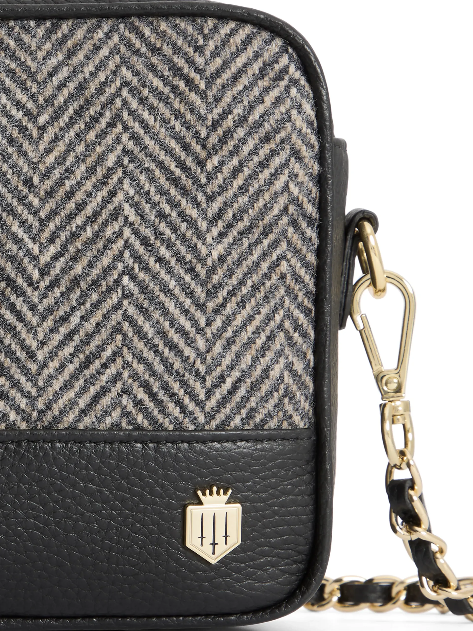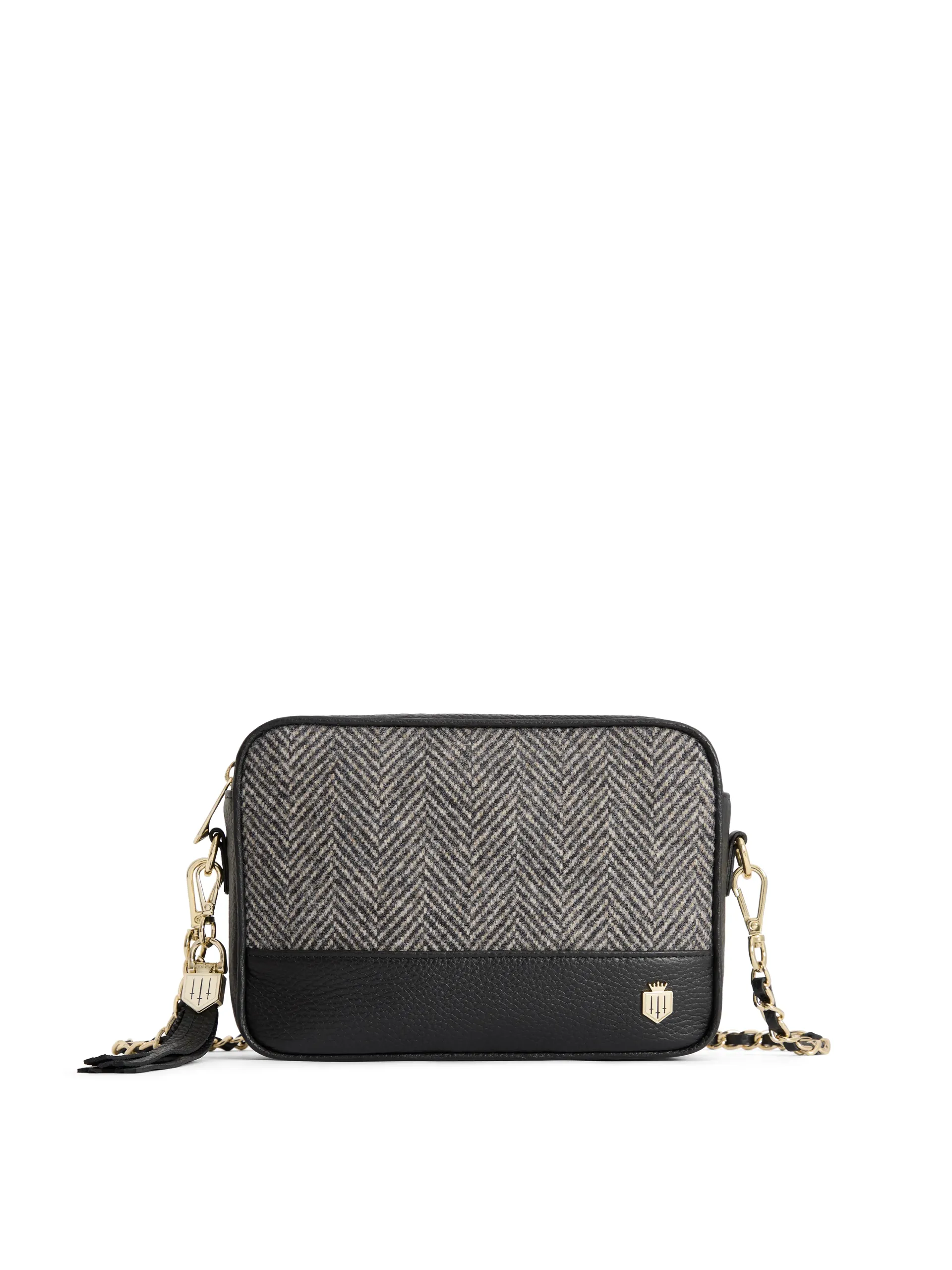 Fairfax and Favor Finsbury Cross Body Bag Herringbone Black Leather