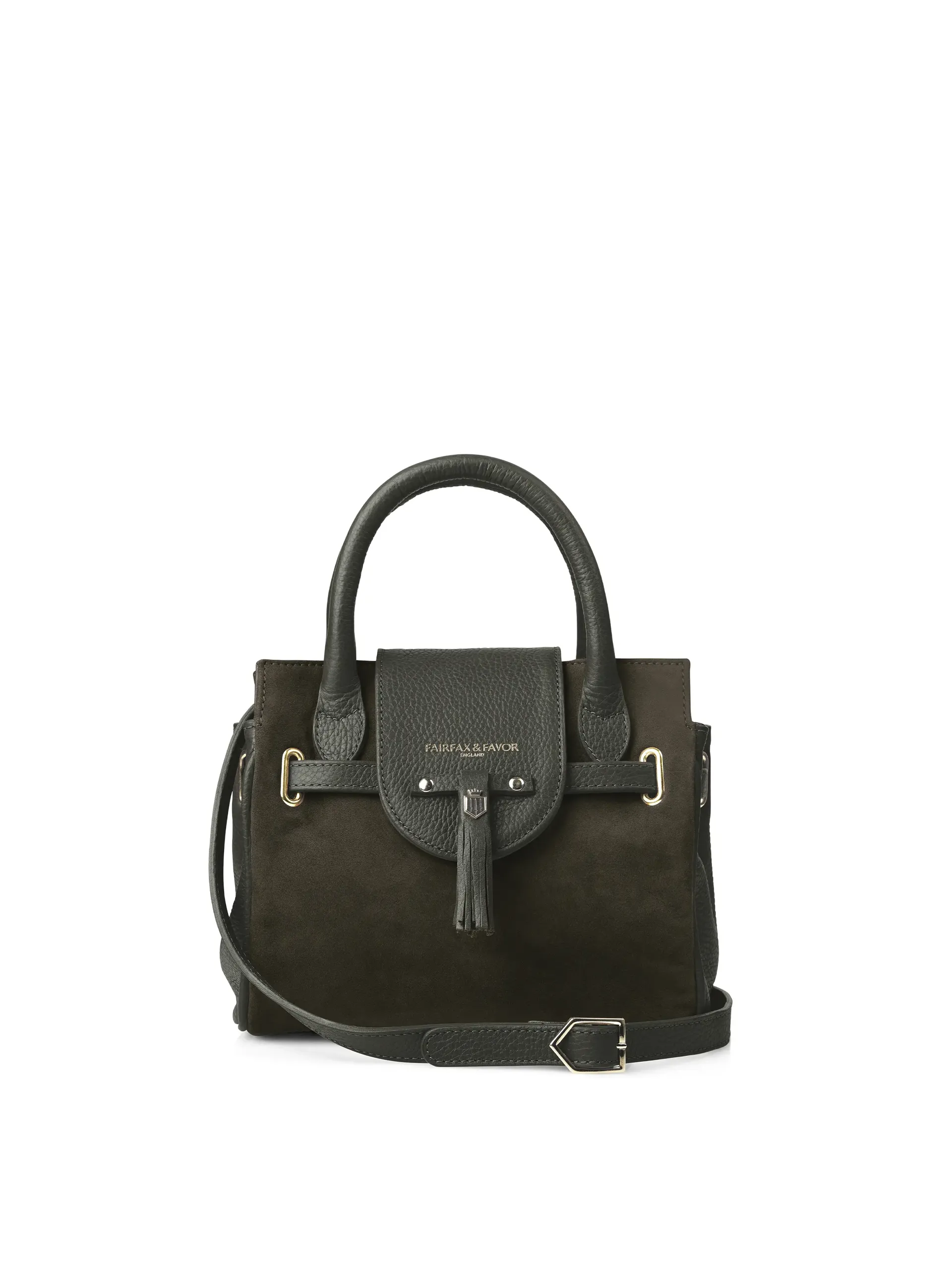 Fairfax and Favor Mini Windsor Handbag Moss Green Suede