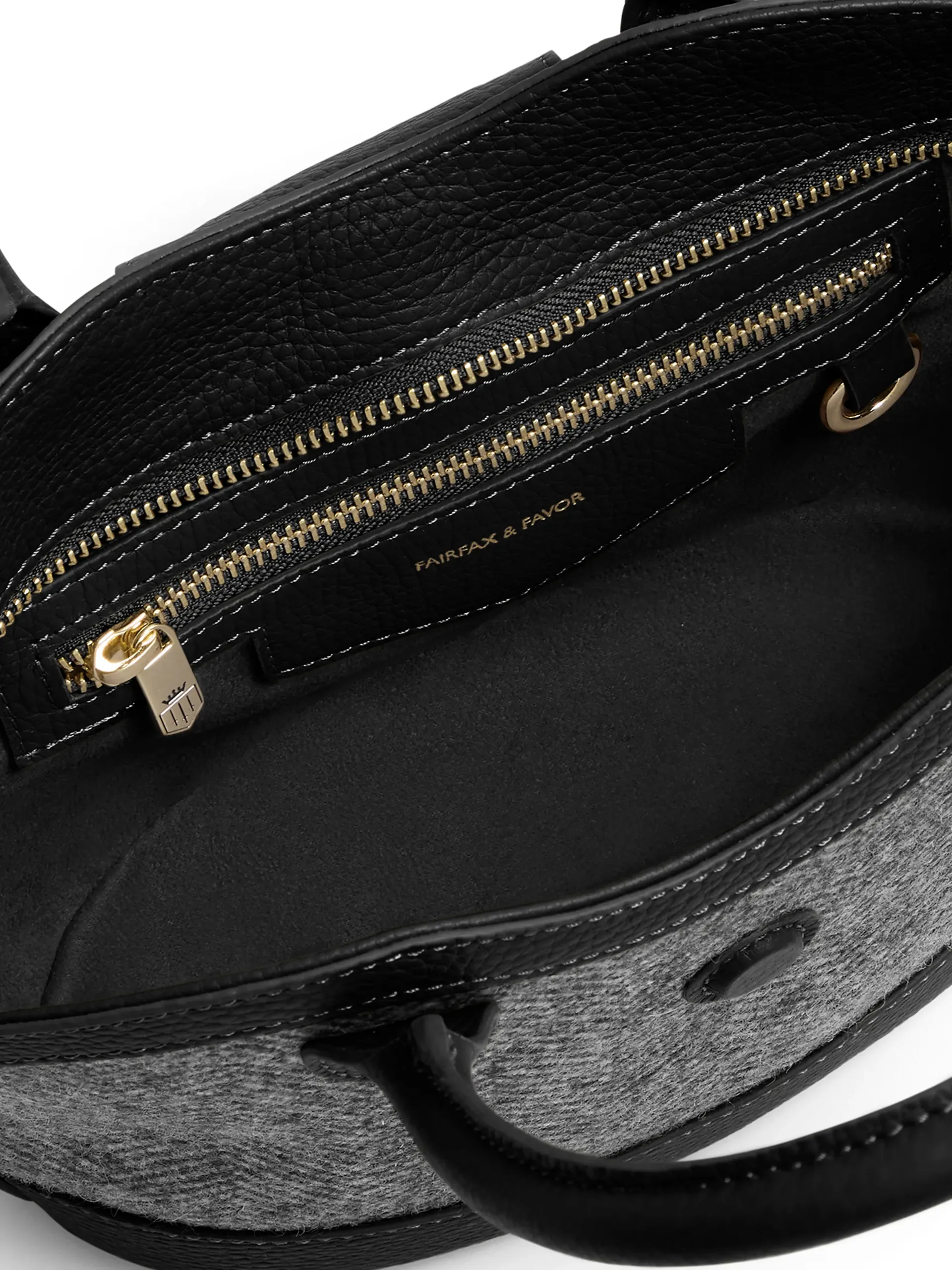 Fairfax and Favor Mini Windsor Tote Herringbone Black Leather